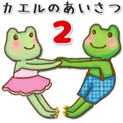 敬語絵本の挿絵のようなカエルのあいさつシリーズ第2弾。男の子と女の子かえるが仲良く挨拶するスタンプです。coyuri より発売
