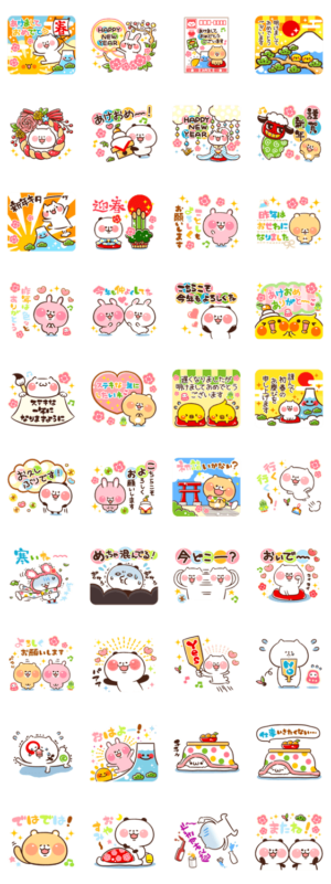 可愛い動物たちによる、Happy new year、あけましておめでとう、昨年もお世話になりましたなど、ずっと使えるお正月メッセージと日常会話のスタンプです♪