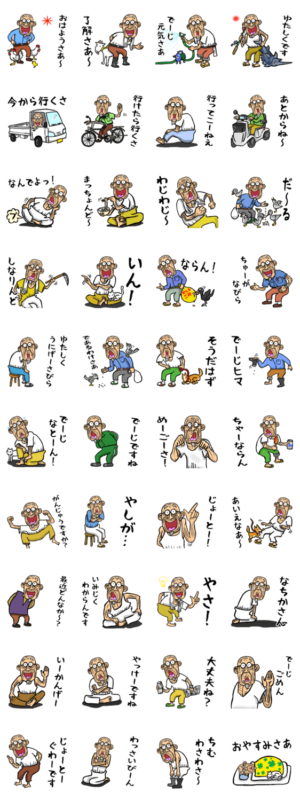 沖縄県のおじいさんスタンプ第二弾です。沖縄県に住んでいる元気なおじいさんが、沖縄県の方言、沖縄弁を喋ります。Brody Machine より発売