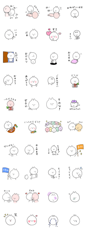 ゆるゆる白うさぎ しろまるのスタンプ第一弾。友達に、家族に、恋人に。あなたの日常会話に、しろまるを添えてください。yururun より発売