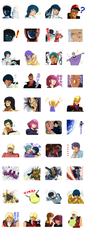 Zガンダム好きならたまりません。ガンダムよりはキャラクターが押し出されている感がありますが、シロッコの崩壊後の顔とか最高です。スタンプとしてはメッセージが少ないのが残念ではありますが、Zガンダムを観た人なら顔でメッセージが伝わるはずです。