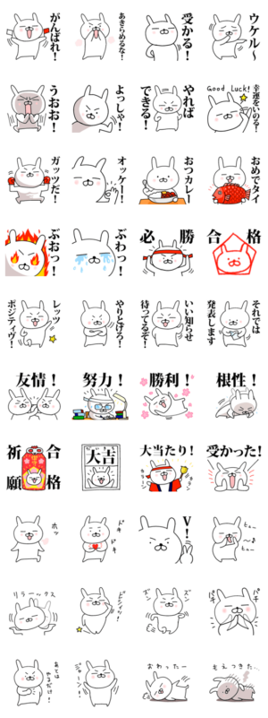 熱いうさぎが応援します。がんばれ受験生。試験も試合も全力で合格。友情・努力・勝利・根性・必勝!日常よく使う挨拶をポジティブに。幸運を祈る。縁起がいいお守り。SeS より発売