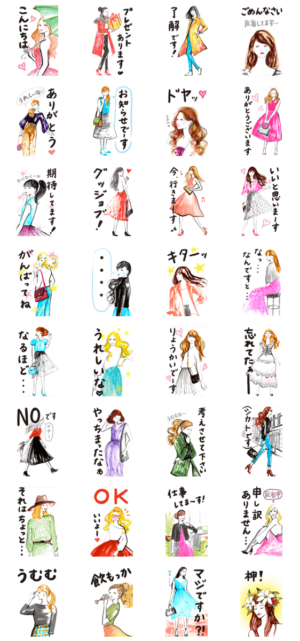 オシャレでモードな女の子のBIGスタンプです。 ファッションイラストが可愛いです。 ファッション大好き! アパレル・美容・デザイン関係の方に。 ※このスタンプはトークルームで大きく表示されるBIGスタンプです。ふらわーず より発売