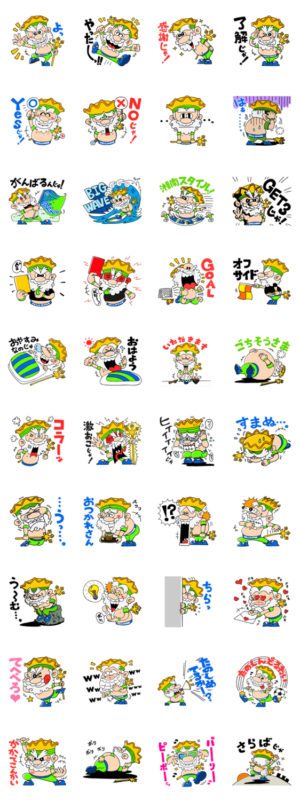 日常で使えるいろいろな表情のキングベルⅠ世のスタンプです。サポーター仲間やご家族たちとたのしく会話してください。湘南ベルマーレ より発売