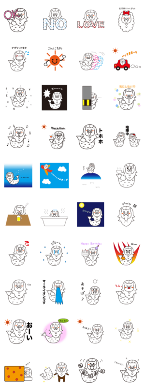 マーライオンのまーちゃま。日々のよくあるシチュエーションで使えるスタンプです。Blue Bird より発売