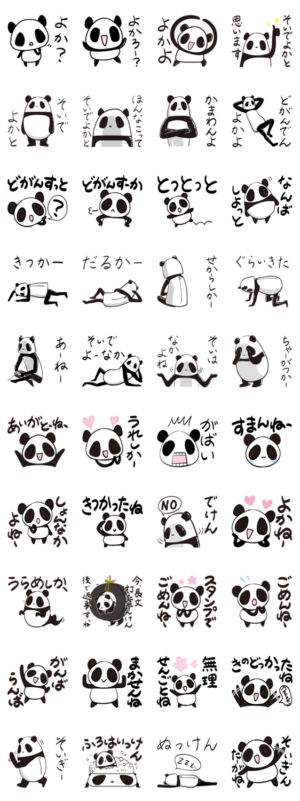 キュートからシュールまで、佐賀弁のパンダスタンプを作りました。長崎、佐世保、熊本、大分、福岡、博多の方々をはじめ、全国でも楽しんで使っていただければ嬉しいです。キノココ より発売