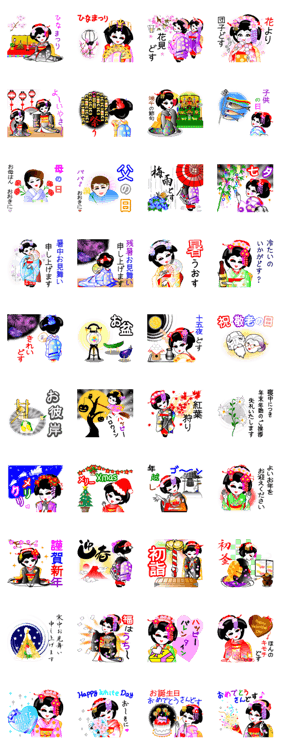 舞妓ガール4季節の行事 スタンプ画像一覧