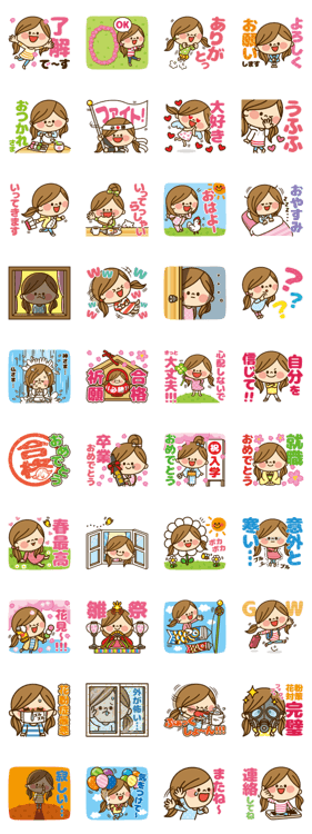 かわいい主婦の1日春編のスタンプで学校の卒業や入学など新しい生活に使いやすいスタンプがたくさんあります。