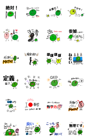 おもしろ数学スタンプ。理系の学生はもちろん、色んな方に使って欲しいです。そして、数学好きになって欲しいです。