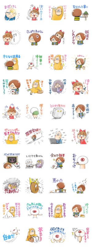 妖怪=怖いイメージを覆す、ゆるーいゲゲゲの鬼太郎スタンプはとても可愛くてどこか面白いです。