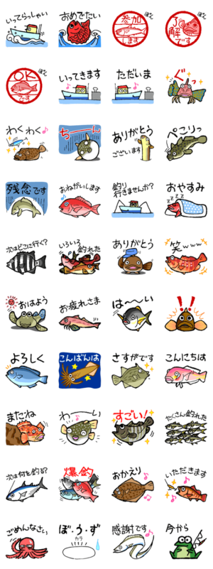 釣り・船・魚が好きな人が毎日の会話を楽しむ為のスタンプです。表情豊かな海の魚をお楽しみください。