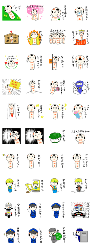 いぎなしなまってる「仙台弁こけし」シリーズ第9弾だっちゃ!お花見、母の日、日常会話に使える春スタンプなのっしゃ♪工事現場のこけしやこけし警察も登場だっちゃ!jugo より発売