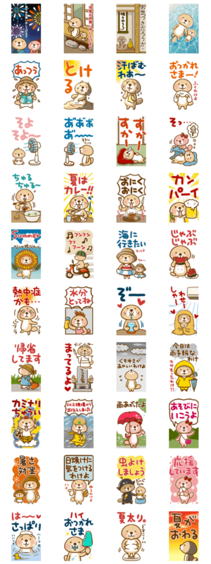 あなたに代わってストレートに気持ちを伝えるラッコさんの夏のBigスタンプ。猛暑、夏バテ、カミナリ、豪雨、お祭りなど盛りだくさん!