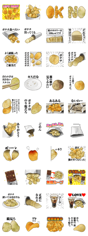みんな大好き定番お菓子のポテトチップス。お供にコーラやチョコもご用意しています。デブ活にどうぞ!センジュ より発売