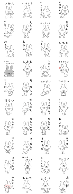 いろんな方言をつかううさぎのスタンプBIG伊予弁編(愛媛・四国、そうでない方も使えるかも。また違う県verに似た方言が見つかるかも)