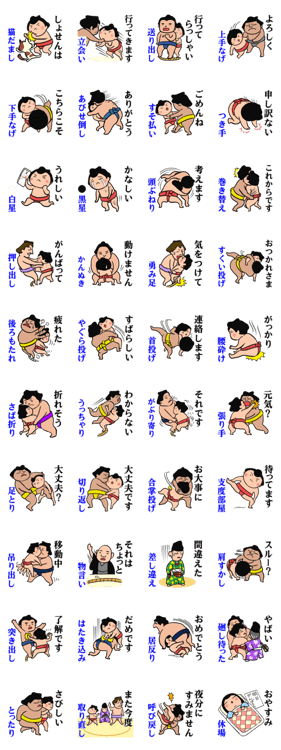 日常会話と相撲用語を組み合わせた相撲ファンのための楽しいスタンプです。あいきじゅん より発売