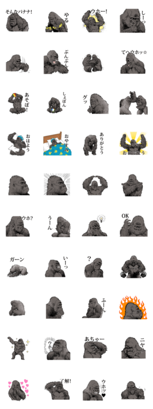強面だけど根は優しい、ワイルドにおちゃめなゴリラのスタンプです。日常会話のお供に、ゴリラをどうぞ。株式会社DK より発売