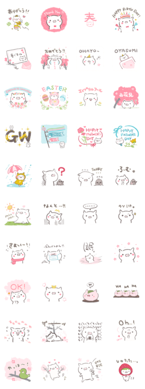 ゆるかわ白ネコの春セット。エイプリルフールやお花見、GW(ゴールデンウィーク)、イースターや父の日・母の日、こどもの日など春ネコにおまかせ。日常の挨拶も春仕様に。ころ より発売