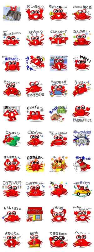 福井弁の蟹ちゃんスタンプ第2弾です。男女問わず使ってみての~♪ekanata より発売