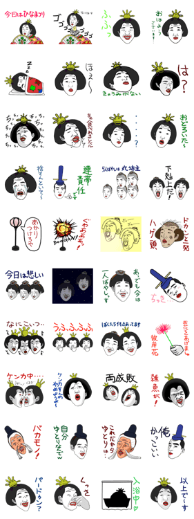 非常に不快な顔で不快な言葉を浴びせてくるお雛様ほか! 小学生に歌い継がれるあの替え歌スタンプもあるぞ!