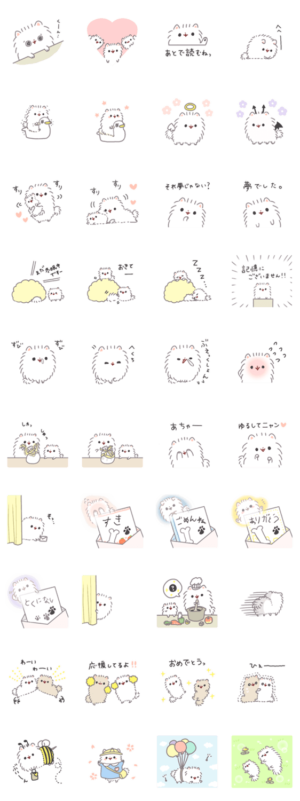 お餅みたいなポメラニアン"もち"のスタンプ。家族やお友達や恋人と楽しく使ってください♪mal より発売