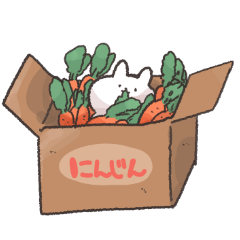 ウサギのウーさんスタンプが登場しました。大好物はニンジンです。毎日ニンジンを132本食べます。これでもまだ足りないくらいです。あ~もっと食べたい。絵師は裕崎さん。