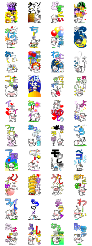 子牛のモーちゃん⑧【BIG】 スタンプに書いてある文字一覧