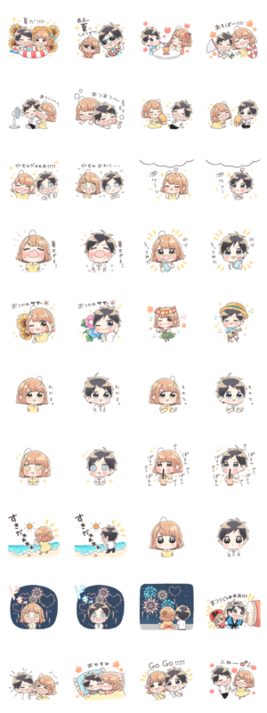 仲良しなあの人に気持ちを伝えるスタンプです。夏の二人に会話の花火を咲かせよう!花芽宮るる より発売