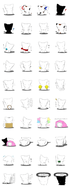 ねこさんのスタンプその3。クロとミケが初登場です。すぐり より発売