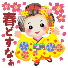 春が来ましたぇ。華やかで可愛い舞妓はんが、やんわりとした京都弁であなたの気持を伝えます。ご入園・ご入学・母の日・ゴールデンウィーク等にお使いやす。