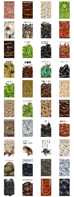 人の好みでキモち悪いと言われ 食物連鎖の下位に居ながらも人類に大きく貢献している虫達 ゴキブリ 青虫 ウジ虫 百足 クモ 幼虫 などの 爆笑ミミズ問題 Bigスタンプです! ※このスタンプはトークルームで大きく表示されるBIGスタンプです。マサオウ より発売