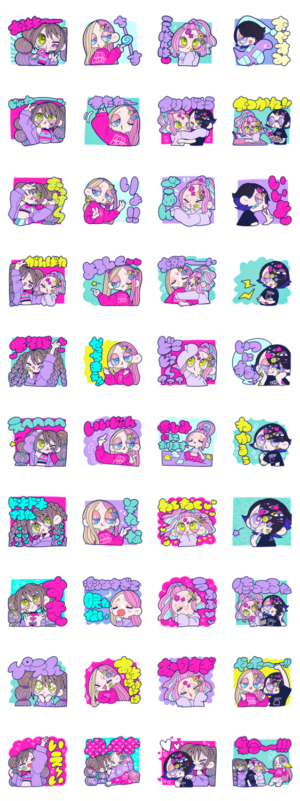 ポップでかわいくてお菓子みたいなやんちゃな子供たちリジー、アビー、ジェニー、クレアのキラキラでたのしいスタンプです!カートゥーン風で使いやすい!
