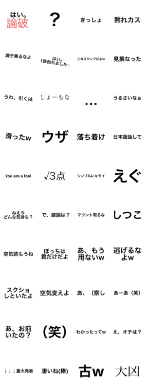 煽りたい人向けのスタンプです。40個で120円とお得です。be より発売