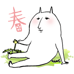 ネコのような妖精「やさぐれねこ」が 卒業や桜、花粉症などの「春」を感じているスタンプです。しろのあゆみ より発売