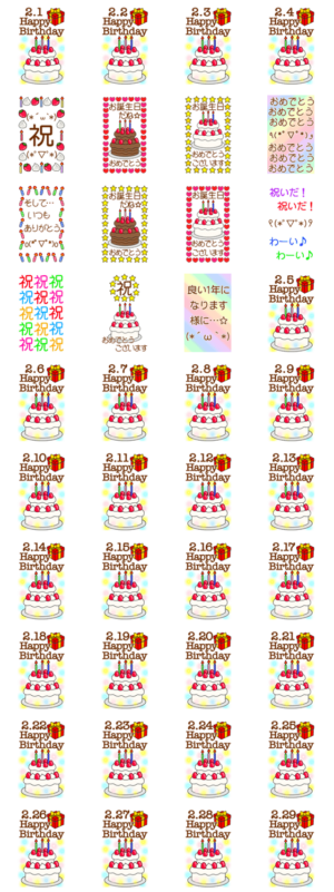 BIGスタンプ 2月1日〜29日のお誕生日お祝い スタンプ画像一覧