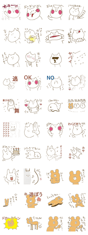 かわいいねこさんとかわいいうさぎさんと寂しがりやのくまさんのスタンプです いっぱい使ってね!