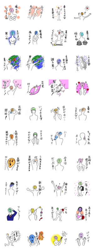 春を楽しんでいる仮面の男です。春は暖かいと寒いが交互して寒暖差の激しい季節。そんな天気を表現しました。それと、春といえば花粉症、エイプリルフール、母の日等コジコジ より発売
