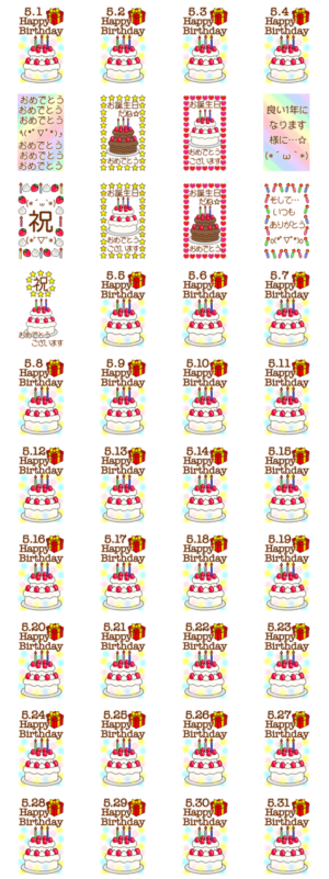 BIGスタンプ 5月1日〜31日のお誕生日お祝いのダウンロードはこちら↓