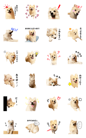 ばばちゃんの愛犬ポメラニアンの『おもち』の実写を色んな表情と実用的な言葉で使いやすい日常会話用スタンプにしてみました!