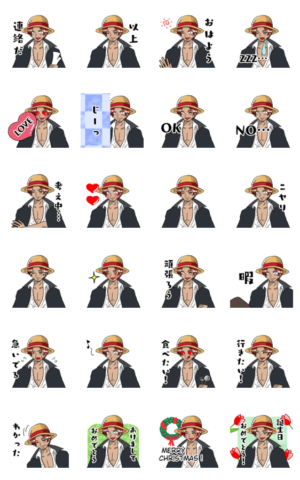 ONE PIECEのシャンクス(若い頃)の日常会話スタンプです。お正月/誕生日/クリスマス/ワンピース