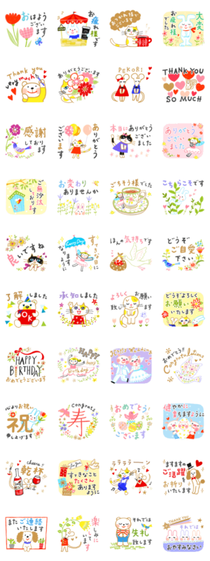 目上の方やお仕事に便利な丁寧言葉を集めました。お誕生日や結婚、出産祝いにも使える大人かわいいスタンプです。※こちらは再販の為、以前販売したものと内容は同じです。