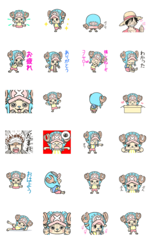 ワンピースのチョッパーの動くスタンプです。ルフィ、トラファルガー・ローもちょこっといるよ