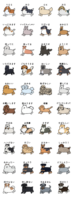 色んな犬種をゆるく描きました。キャバリア、スパニエル、ピレニーズ、グレイハウンド、シェパード、レトリーバー、セッター、コモンドール、珍島犬、サモエド、四国犬等。えびのみぞれ より発売