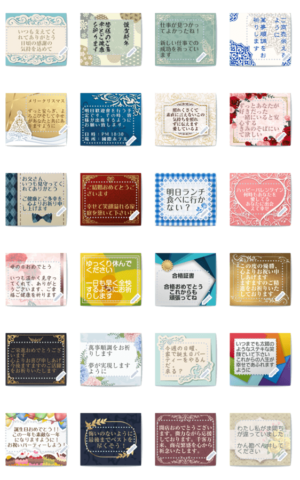 誕生日, クリスマス, ニューイヤー, バレンタイン, 母の日, 父の日, 結婚, ウエディング, おめでとう, 証書, 招待状, ごめんね, ありがとう(メッセージスタンプ) 現在この商品は一部のスマートフォン版LINE 10.3.0以上のトークルームでのみ使用できます。動作環境の最新情報はヘルプをご確認ください。Gummy Banana より発売