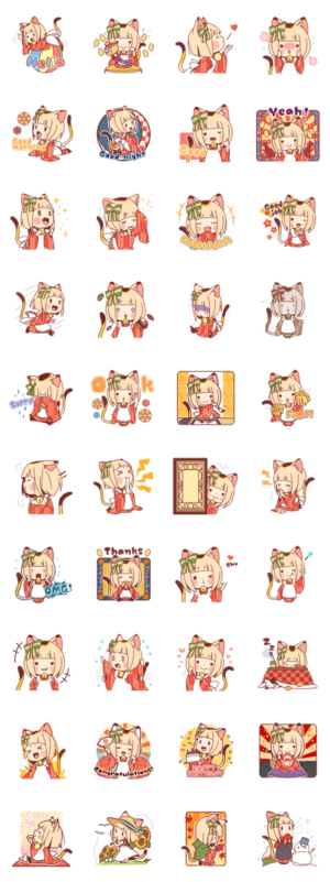 福を呼ぶ招き猫の女の子が、おしゃれにトークを盛り上げる、日常会話でに使いやすいスタンプです。ネコ耳・和風・レトロモダン好きにオススメ!春夏秋冬・お正月にも是非。株式会社DK より発売