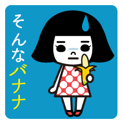 昭和レトロな死語やだじゃれスタンプ。おかっぱの女の子が昭和っぽくて可愛い。