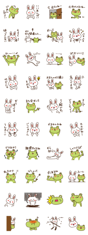 うさぎのしろリンとカエルのケロヲの新潟県上越妙高エリア・方言スタンプ第2弾。さらに使いやすくなったでねー。
