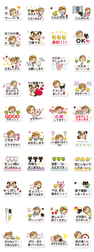 吹き出しデカ文字シリーズ♥今回は女の子だけでなく.ネコ.うさぎ.ひよこ.カエル.ぶたなどかわいい動物達もいてお得なセット♥ゆるい敬語で先輩や友達にもたっぷり使える♥