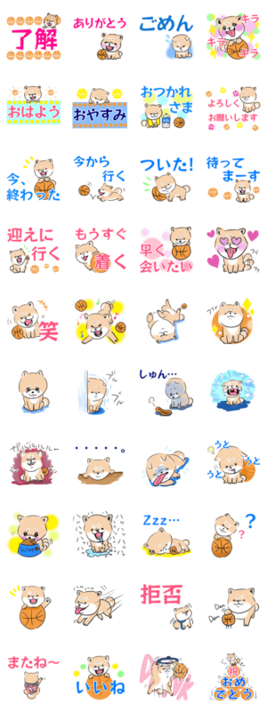 バスケットボールが大好きな柴犬のシバスケ。従順な忠犬。表情豊かな可愛いわんこ。デカ文字バージョン。Rika より発売