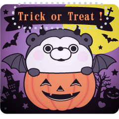 ハロウィンをエンジョイしているデビルくまの文字スタンプです。会話になじむ使いやすいスタンプとなっています。